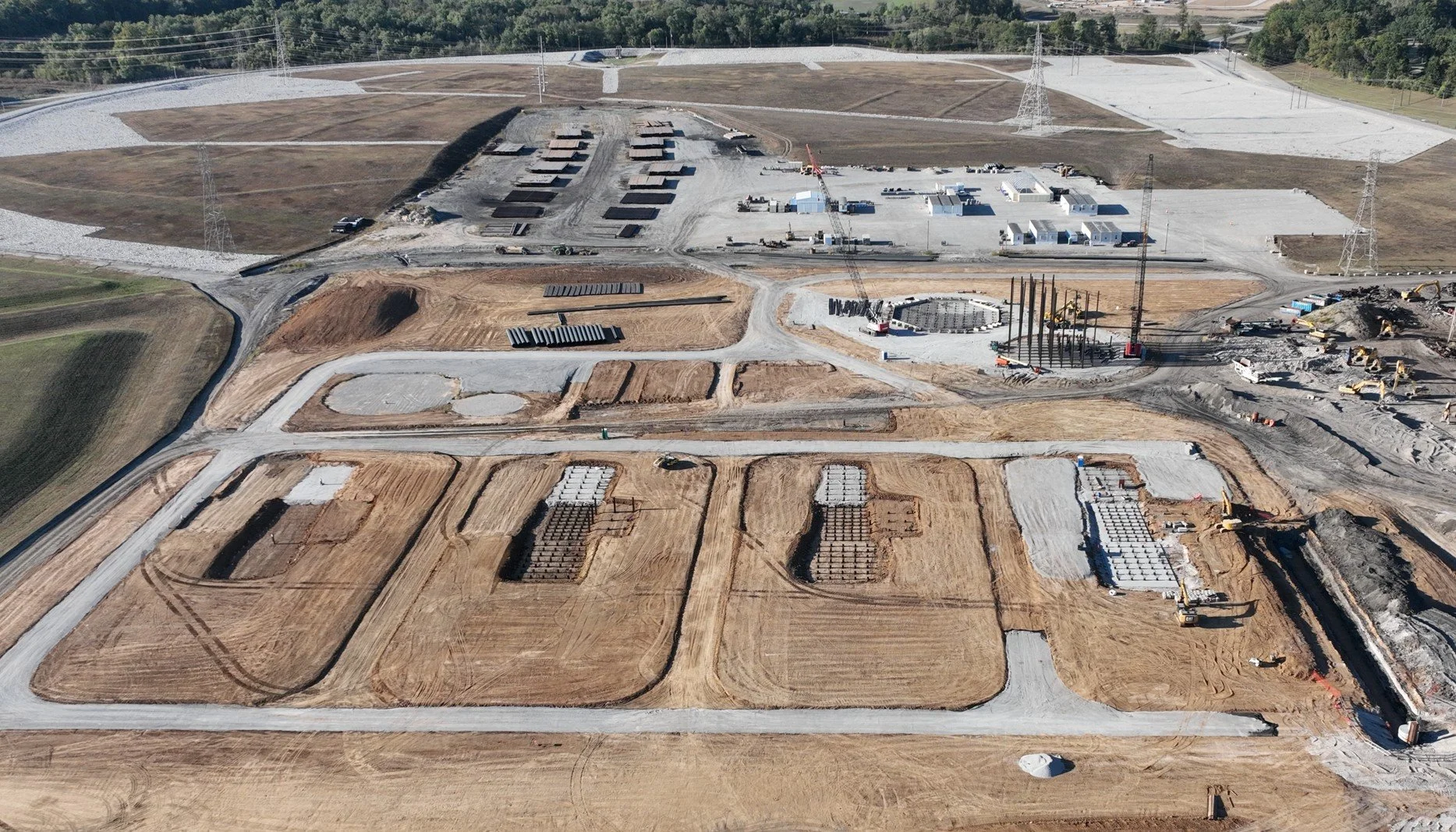 Crews work to set rebar for the foundation of the site's fuel oil tank.